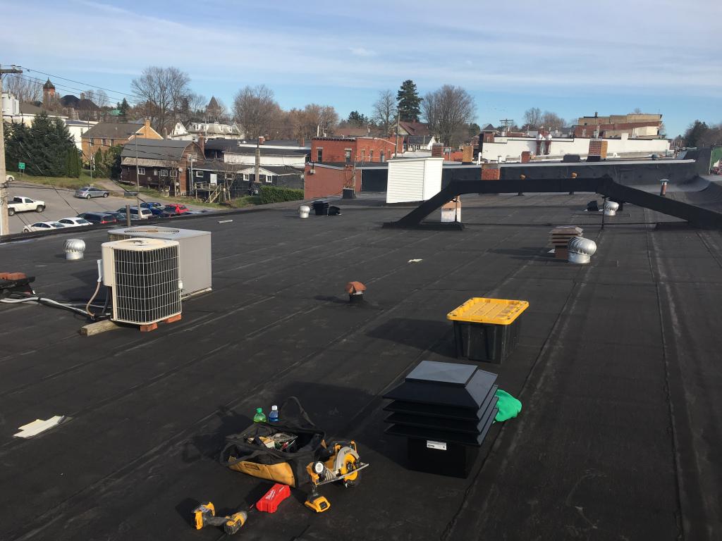 Replacing old vents on a commercial roof before insulating below. |