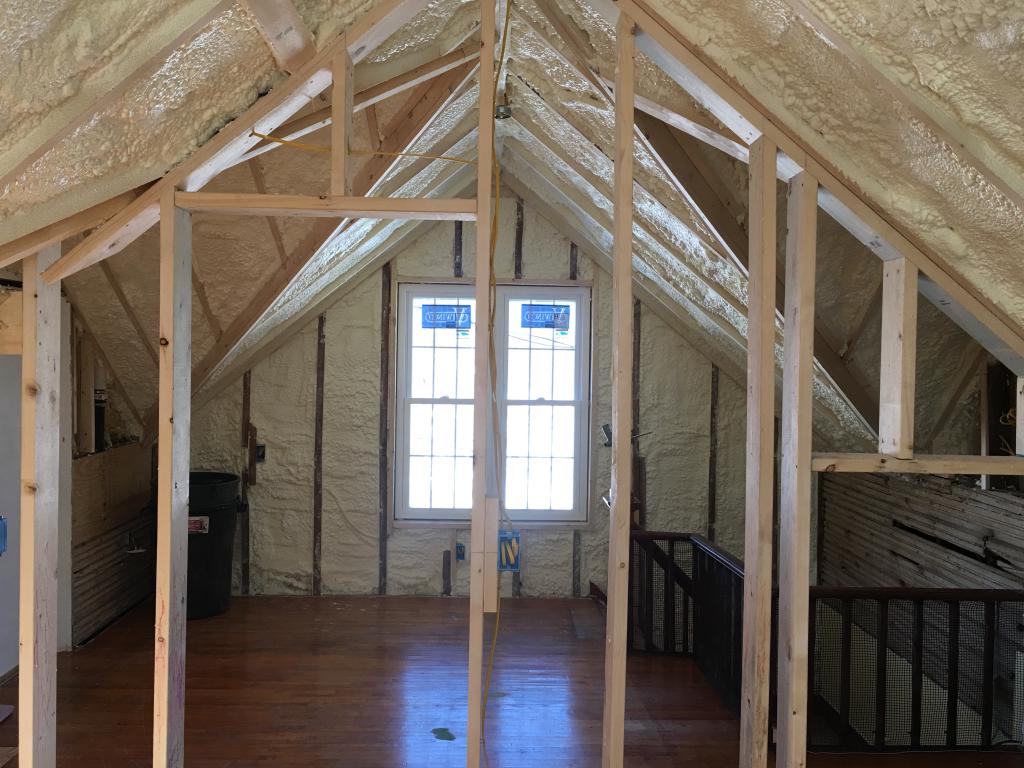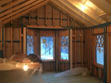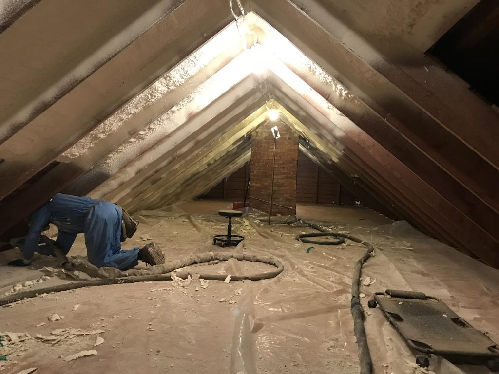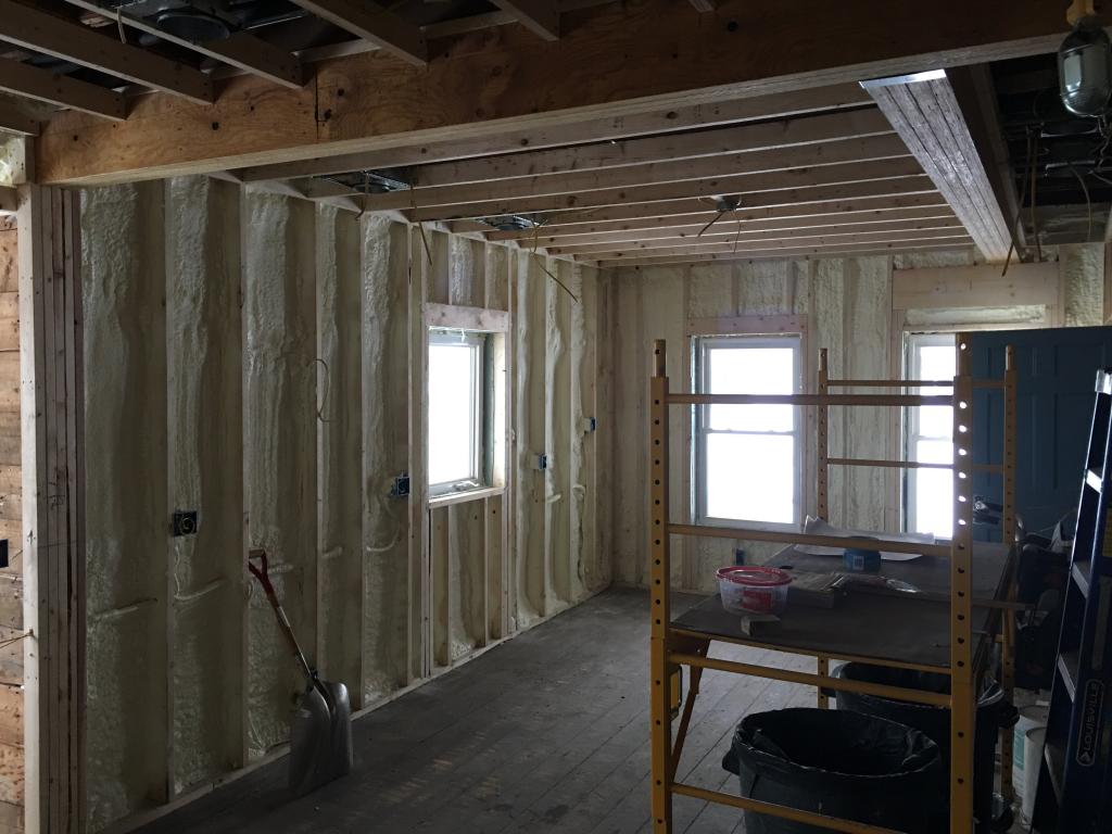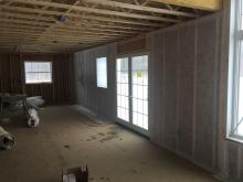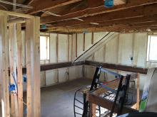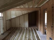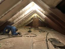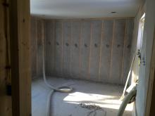 Air sealing prior to netting and dense packing exterior walls with cellulose. |