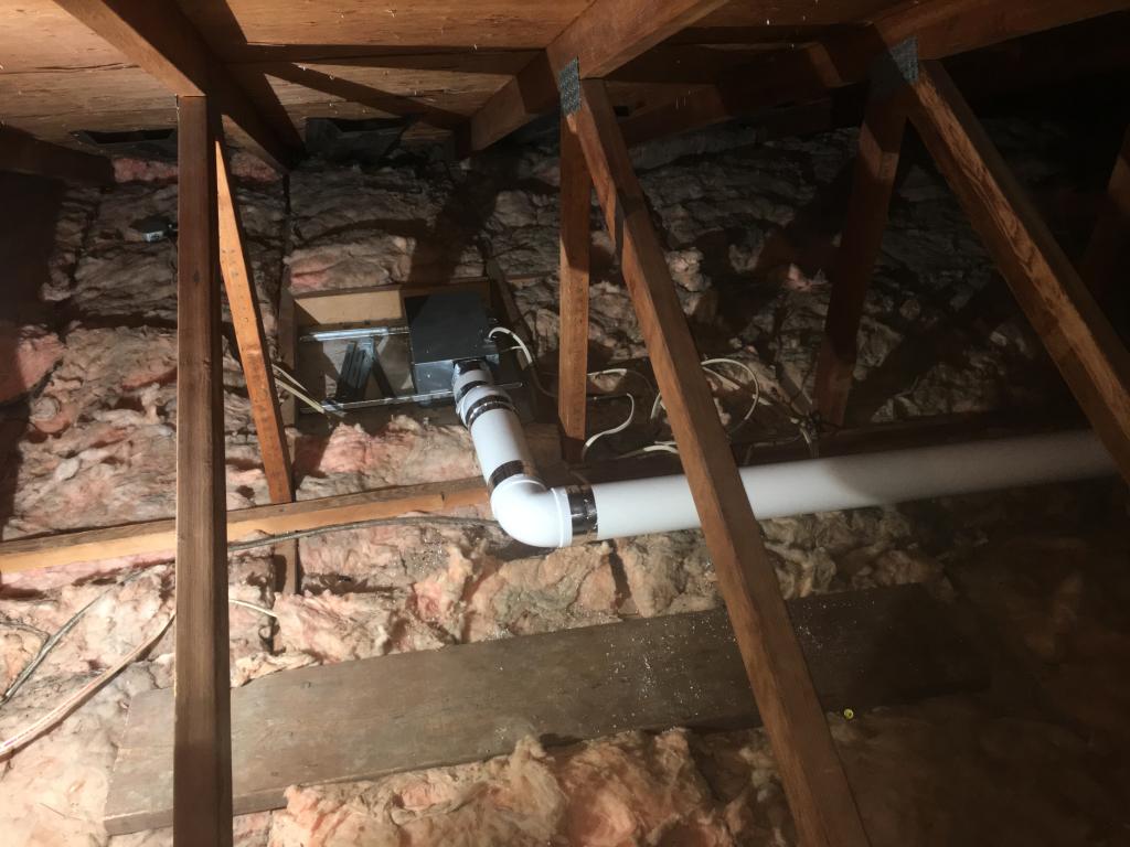 Making sure bathroom vents are properly vented prior to blown insulation being installed