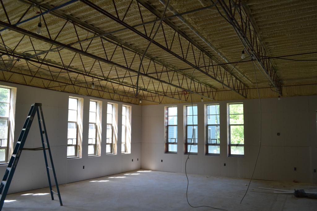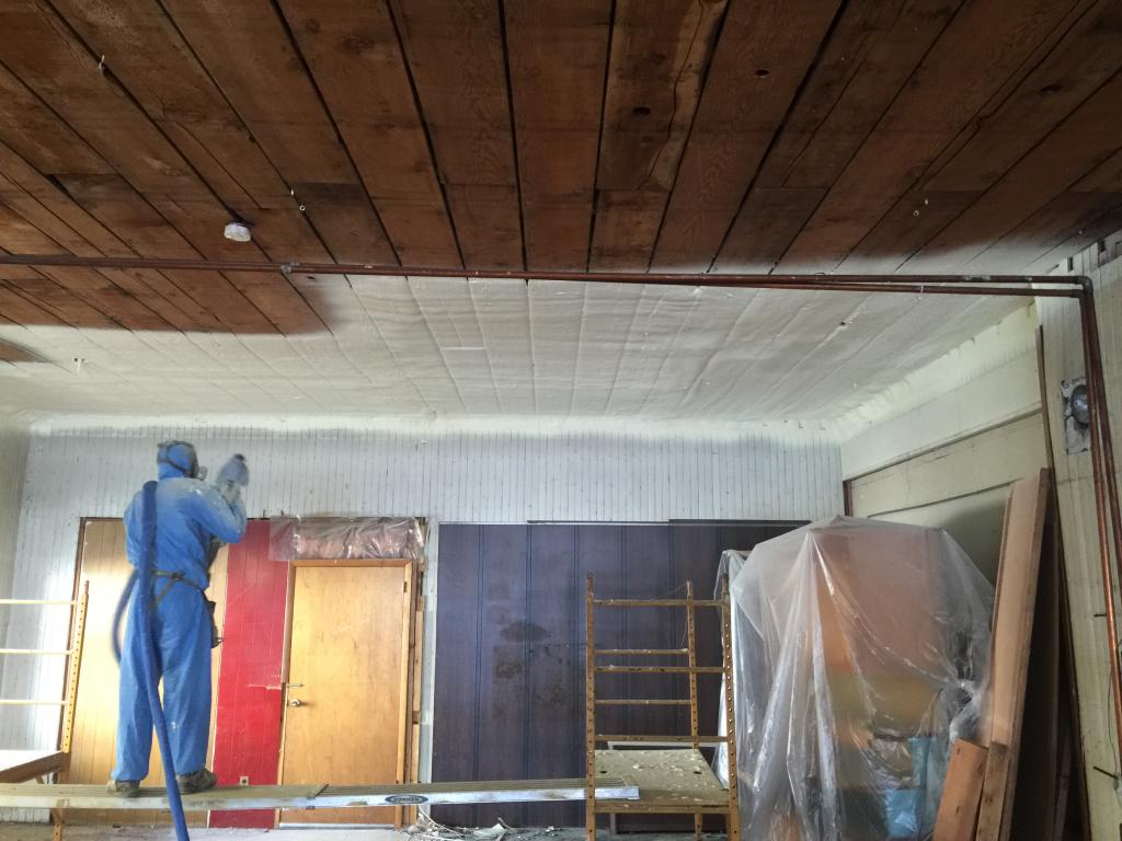 Closed cell foam on ceiling. To be coated with thermal barrier and left exposed. |