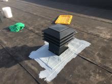 Replacing old vents on a commercial roof before insulating below. |