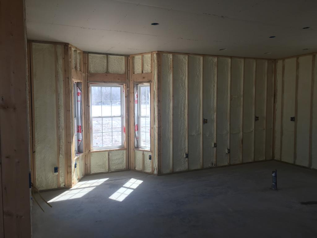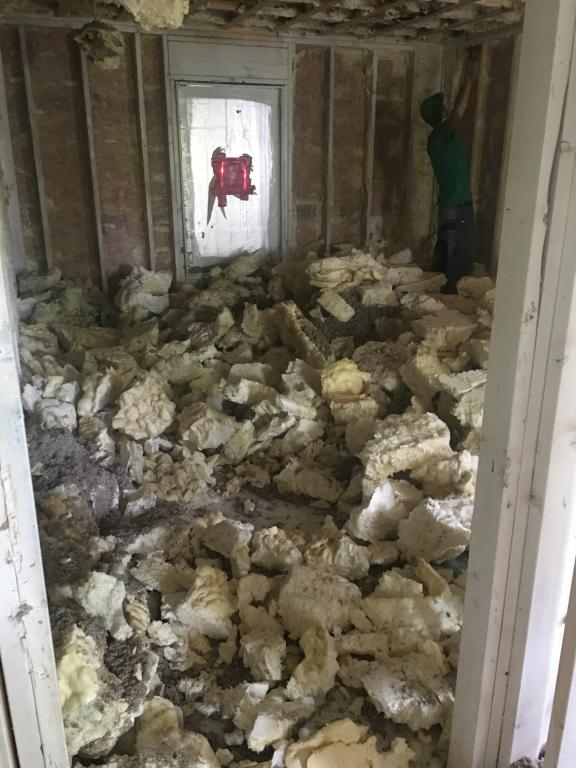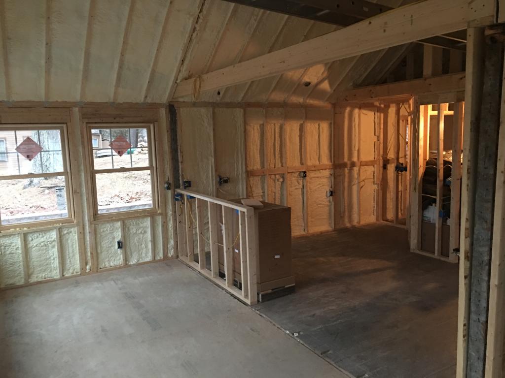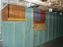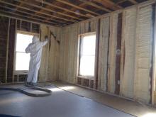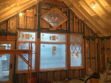 Air sealing prior to netting and dense packing exterior walls with cellulose. |